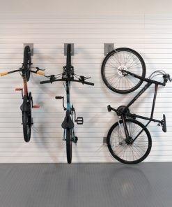 Three bicycles are vertically mounted on a white slat wall, two positioned upright and one hung sideways, in a clean, organized indoor space. Closet Concepts of Grand RapidsBy Monirul Islam / January 6, 2026