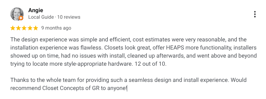 Your home should work for you, not against you. Whether your closets are overflowing, your garage has become a catch-all, or your mudroom is more chaotic than functional, you deserve a space that actually fits your life. Thousands of West Michigan homeowners have discovered that custom storage solutions from Closet Concepts of Grand Rapids are the answer. But you do not have to take our word for it. Here is what your neighbors are saying.
