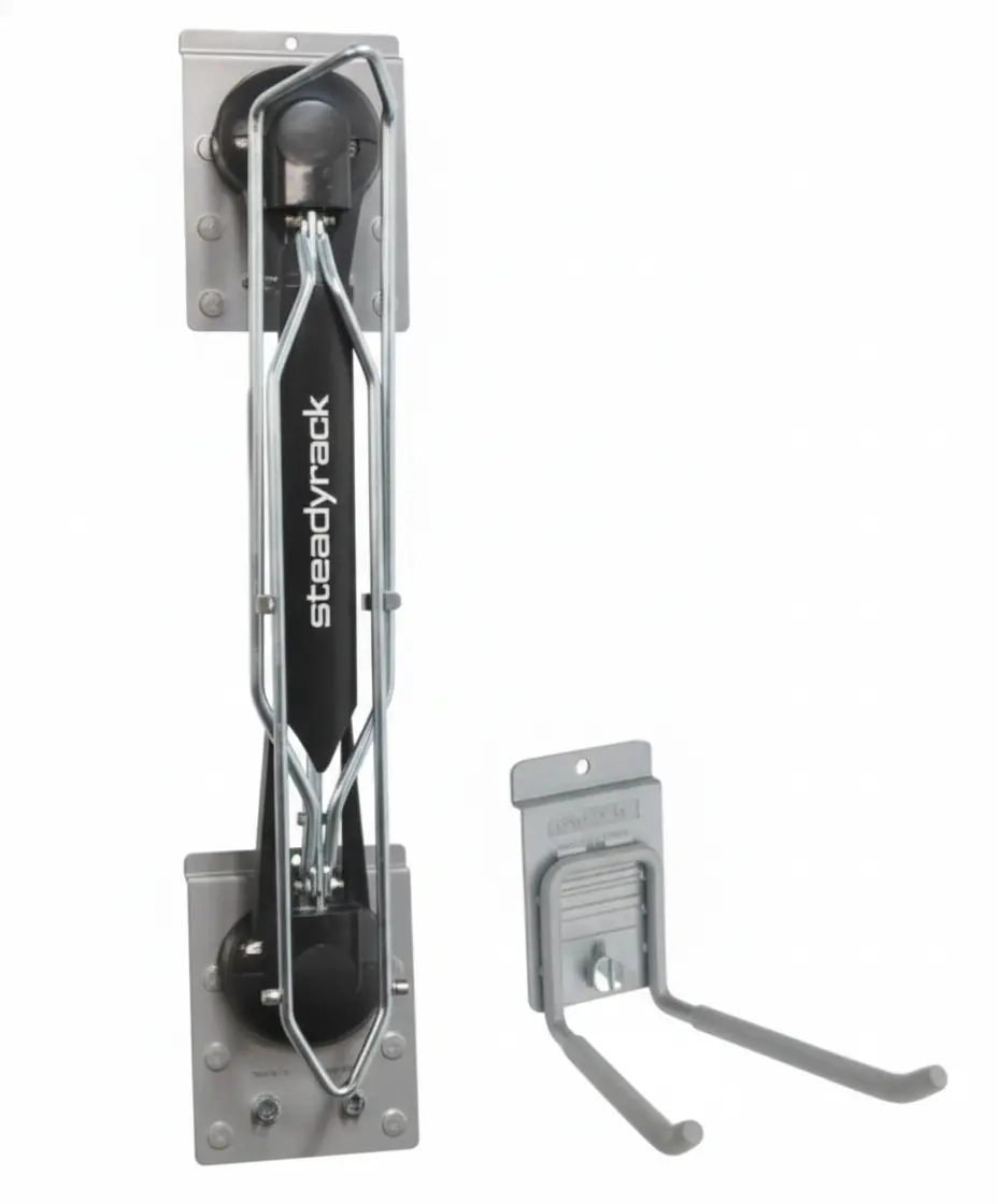 One of the most annoying and awkward things to store in a garage or storage space is a bike—particularly bulky mountain bikes. Thanks to storeWALL and Steadyrack, mountain bike storage has never been easier with the Steadyrack mountain bike bracket set.
